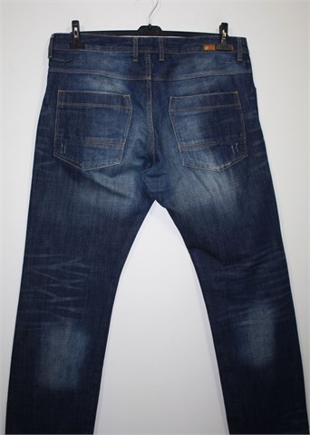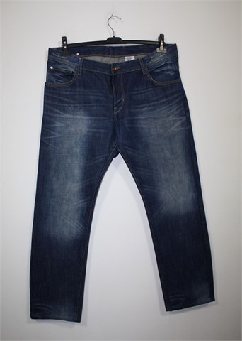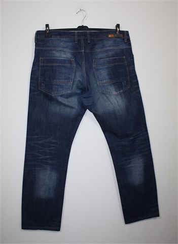 H&M traper hlače plave boje, mjestimično ispranog i izlizanog izgleda (tvornički used look). Prednje kopčanje, pasica za remen. Prednji i stražnji džepovi. Oznaka modela - relaxed low waist, profesionalno skraćene.
