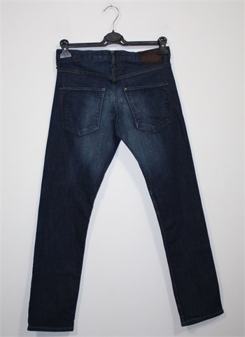 H&M traper hlače, tamno plave boje mjestimično isprano izgleda (tvornički). Prednji cif i kopčanje, pasica za remen. Prednji i stražnji klasični džepovi. Blago rastezljive.