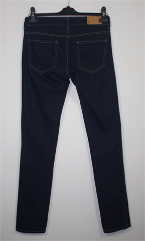H&M traper hlače tamno plave boje. Prednji cif i kopčanje, pasica za remen. Prednji i stražnji klasični džepovi. Model: low waist, slim leg (niski struk, uske nogavice). Blago rastezljive.