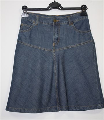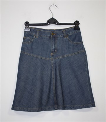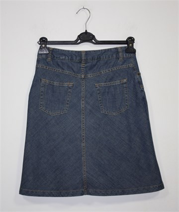 H&M traper suknja plave boje, mjestimično ispranog izgleda. Prednji cif i kopčanje, pasica za remen. Prednji i stražnji džepovi. Blago rastezljiva.