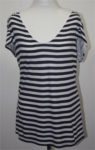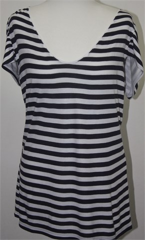 H&M duža majica/tunika sa kratkim rukavima, prugasta kombinacija tamno plave i bijele boje. Vrlo mekan i blago rastezljiv materijal.