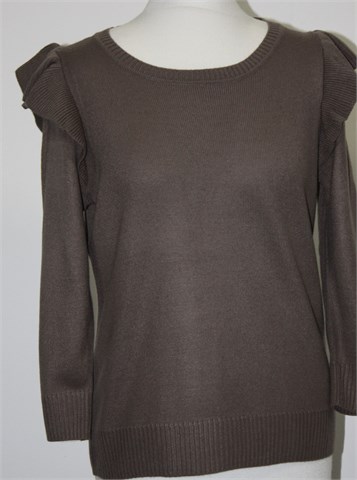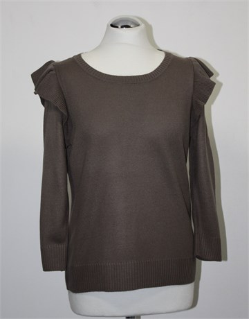 H&M vesta sa poludugim rukavima, smeđe boje. Lijepi detalji na ramenima, širi model (vidjeti mjere). Tanje i rastezljivo pletivo.