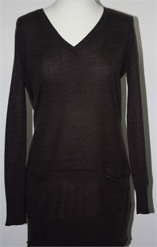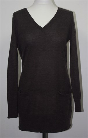 H&M duža vesta/tunika sa prednjim malim džepićima, prošarano smeđe boje. Tanje pletivo, mekano i rastezljivo.