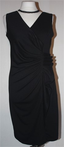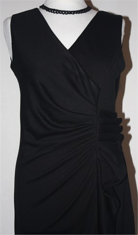 Haljina crne boje, bez rukava. Sa prednje bočne strane su ukrasni prošivi, dupli materijal u gornjem dijelu. Stražnji cif, blago rastezljiv materijal.