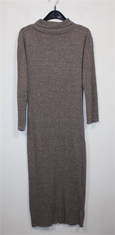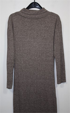 Duža haljina prošarano smeđe-bež boje sa dolčevita ovratnikom, rukavi su dugi. Materijal je tanak, lagan i vrlo rastezljiv (vjerojatno mješavina viskoze/poliestera i elastina). Rukavi su u ramenima otpušteni pa nije skroz uz tijelo (šira u dijelu oko pazuha).