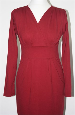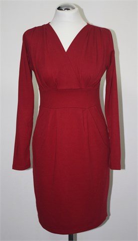 Greence haljina sa dugim rukavima, tamnije zagasito crvene boje (nije toliko intenzivna boja kao na slici). Bočni džepovi. Mekan i blago rastezljiv materijal.