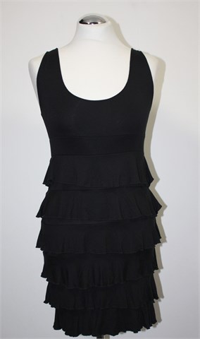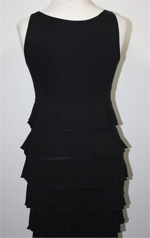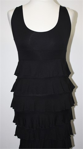 Haljina/tunika bez rukava, crne boje sa volančićima u donjem dijelu. Mekana i rastezljiva viskoza.
