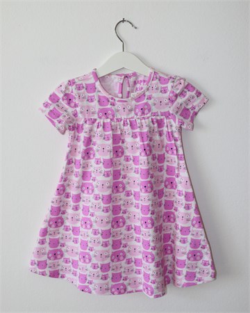 Happy Kids by Tchibo haljina bijele boje sa rozim printom maca (boje i uzorak printa vidljivi na slikama). Mekana i rastezljiva.