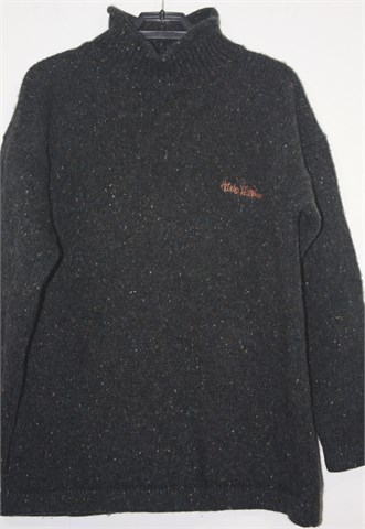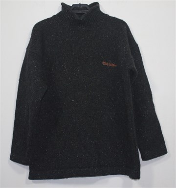 Harley Davidson vuneni pulover prošarano (špricano) tamnije sive boje. Debelo, toplo i vrlo blago rastezljivo pletivo.