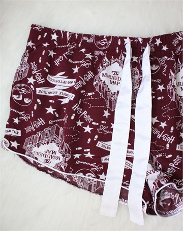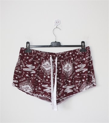 Harry Potter (Love to lounge, Primark) kratke hlačice za spavanje bordo boje sa bijelim printom (vidljivo na slikama). U struku gumica i satenske vezice. Mekan i ugodan materijal.