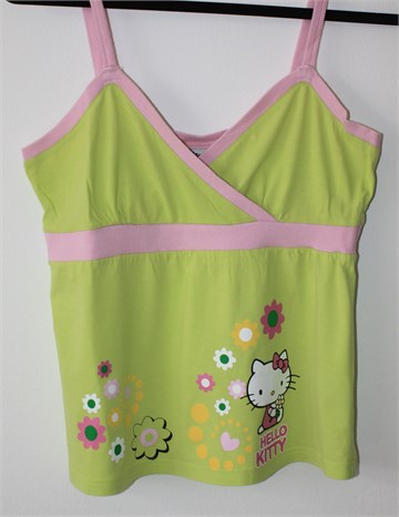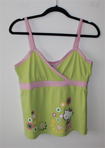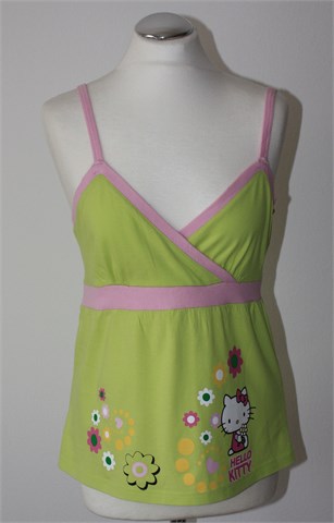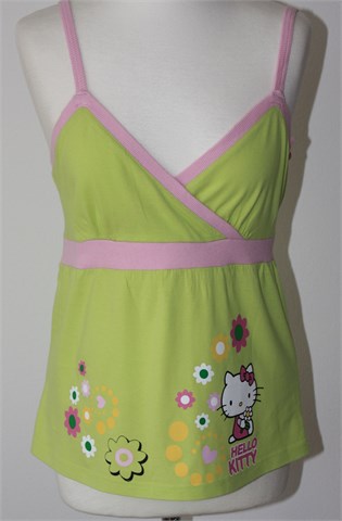 Hello Kitty topić/majica za spavanje (original Sanrio) zelene boje sa detaljima u rozoj boji i prednjim printom (vidljivo na slikama). Mekan i blago rastezljiv pamuk. Sa stražnje (unutrašnje) strane su zadebljanja na tkanini (nisu oštećenja, takva je tvornički).