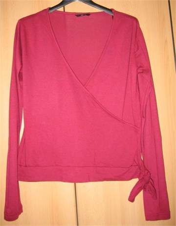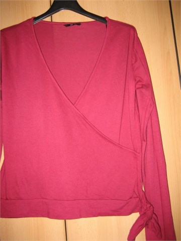 Izuzetno mekana i rastezljiva majica. Dugi rukavi, lažni preklop i vezanje na boku. Veličina na majici piše M ali je dosta rastezljiva i odgovarala bi veličinama 40/42.