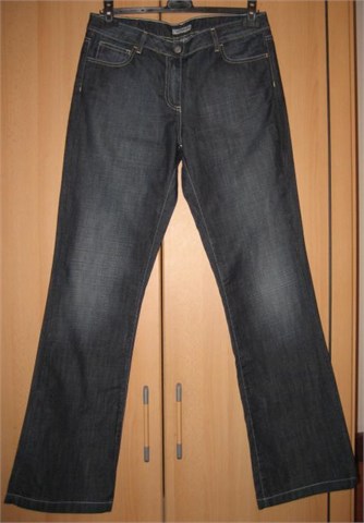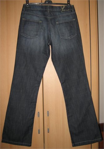 Nove, samo oprane. Nenošene. Naručene preko neta, meni nažalost prevelike. Niži struk, ne preplitke. Ukrasi od žutog i bijelog konca, izrazito tamni traper, na nekim mjestima blago ispranog izgleda. Nisu rastezljive.