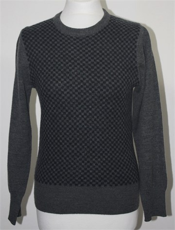 Henry Choice vesta/pulover prošarano sive boje sa prednjim crnim kockastim uzorkom. Mekano, toplo i rastezljivo pletivo, deblje sa prednje strane. Unisex model.