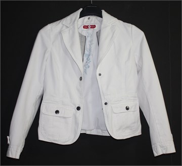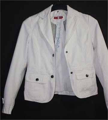 Here+There (C&A) jakna bijele boje, dvoslojnog izgleda. Prednji cif i vanjsko kopčanje sa drukerima, iznutra kopčanje sa cifom. Bočni džepovi sa drukerima, mjestimične aplikacije od bijelog konca. Širina rukava i struka može se regulirati (vezice i drukeri u dvije varijante širine).