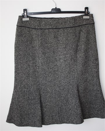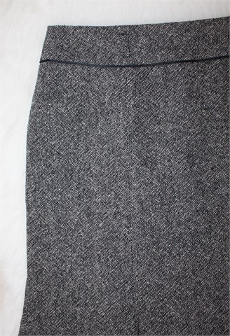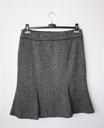 Hobbs zimska suknja prošarano crno-bijele boje (vidljivo na slici izbliza). Bočni cif, male ušice za remen. Podstavljena (podstava ima bočne rasporke).
