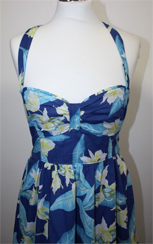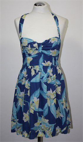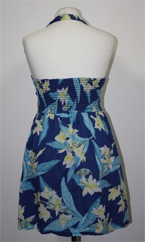 Hollister kraća haljina/tunika plave boje sa lijepim cvjetnim printom. Trakica koja ide oko vrata (dužina se regulira sa vezanjem u čvor), gornji dio leđa je prošiven sa gumicama pa je širina prilagodljiva. Podstavljena plavom pamučnom podstavom. Lagan i mekan pamuk.