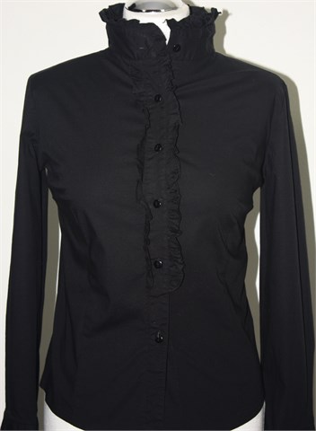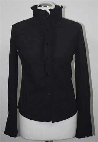 Hook košulja sa dugim rukavima, crne boje. Oko ovratnika, rukava i prednjeg kopčanja su ukrasni volančići. Čvrst i rastezljiv materijal.