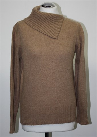 Hout Brox vesta/dolčevita prošarano bež boje, ovratnik se nosi preklopljen (kao na slici). Mekano i rastezljivo vuneno pletivo.