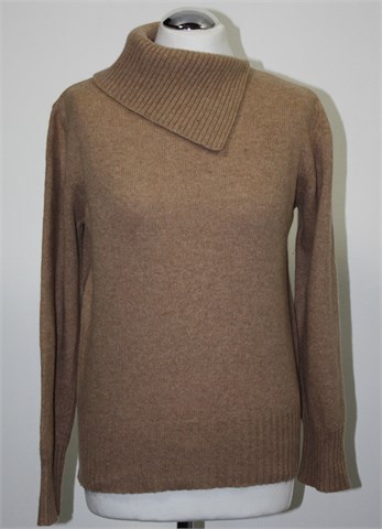 Hout Brox vesta/dolčevita prošarano smeđe-bež boje, ovratnik se nosi preklopljen (kao na slici). Mekano i rastezljivo pletivo.