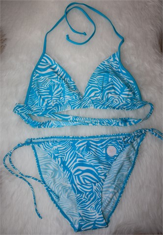 Gornji dio sa vezanjem oko vrata i na leđima (regulacija širine), bez pojačanja (mogu se staviti jastučići u grudnjak ali ne dolaze uz bikini). Deklarirana veličina L (cca košarica B).