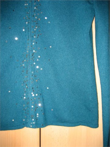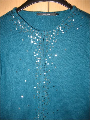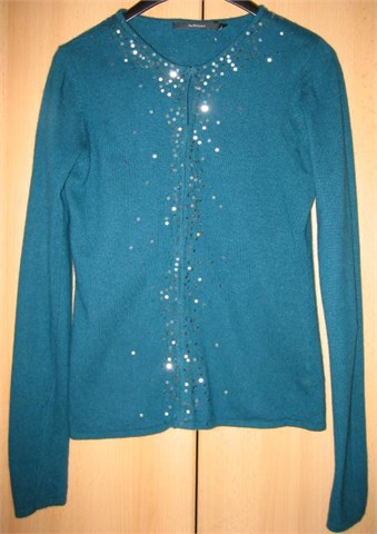 Dugi rukavi, mekano pletivo, našiveni ukrasi, na prednjoj strani skriveno kopčanje, rastezljiva