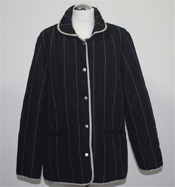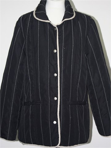 Infinity jakna crne boje sa detaljima i preštepima od konca u bež boji. Prednje kopčanje sa drukerima, bočni džepovi i jedan unutarnji džepić. Nepropustan materijal, blago podstavljena.