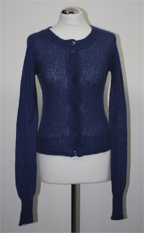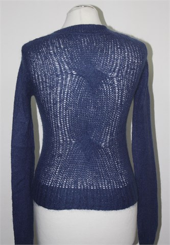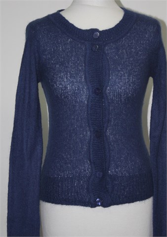 Intimissimi vesta na kopčanje (ili kardigan) tamnije plave boje. Sa stražnje strane uzorak pletenice. Mekana, rastezljiva i mucasta, rupičasto pletivo.
