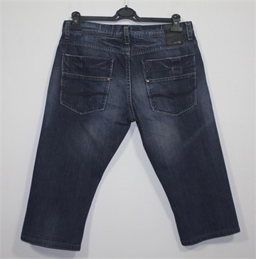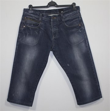 Jack & Jones poluduge traper hlače (skraćene iz dugih), srednje plave boje mjestimično ispranog i iscufanog izgleda. Prednje kopčanje, pasica za remen. Prednji i stražnji džepovi. Čvrst i nerastezljiv traper.