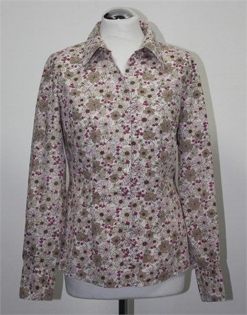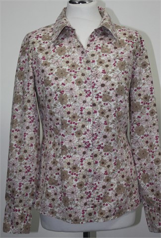 Jackpot košulja sa dugim rukavima, bijele boje sa cvjetnim printom. Prednje klasično kopčanje, prednji i stražnji ušitci (blago strukirana). Čvrst i nerastezljiv materijal.