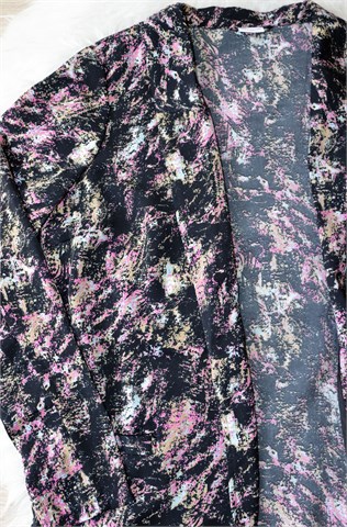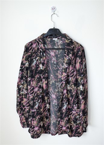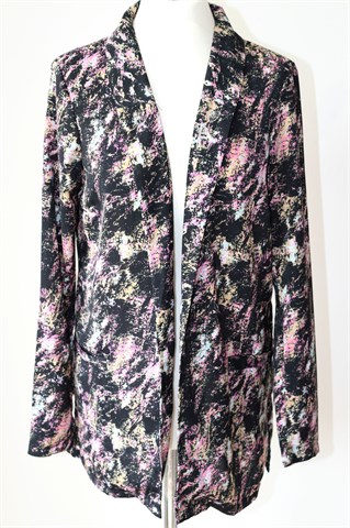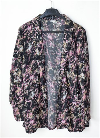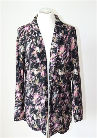 Jacqueline de Yong (Only) blazer crne boje sa šarenim printom (uzorak printa vidljiv na slikama). Bez kopčanja, bočni džepovi, bočni prorezi. Tanak i lagan, nije rastezljiv.