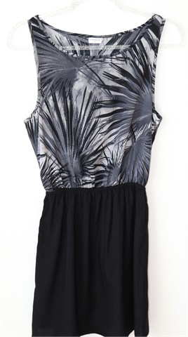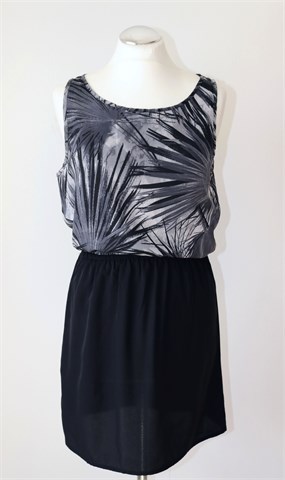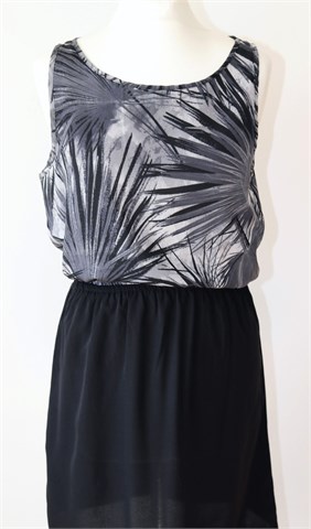Jacqueline deYong haljina bez rukava. U struku gumica, donji dio haljine crne boje, gornji dio sa printom/uzorkom (vidljivo na slikama). Tanak i lagan materijal, blago rastezljiv.