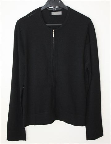 Jaxqui.e vesta crne boje, sa prednje strane kopčanje sa cifom. Ugodno i rastezljivo pletivo. Srednje debljine, nosiva većinu godine.