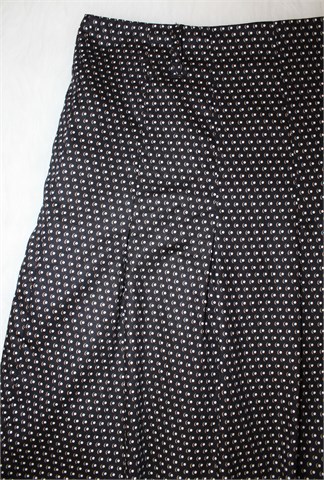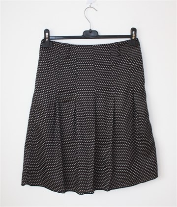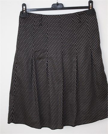 Jake*s suknja crne boje sa printom (boje i uzorak printa vidljivi na slikama). Bočni cif, podstavljena, ušice za remen. Faldice sa prednje i stražnje strane. Tanja i lagana, nije rastezljiva.