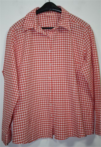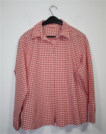 Janina košulja sa dugim rukavima, kockasti uzorak u tamno narančasto/crveno-bijeloj kombinaciji. Prednje kopčanje, tanji i lagan materijal.