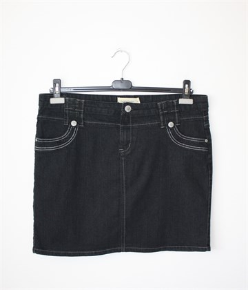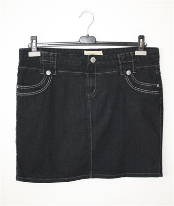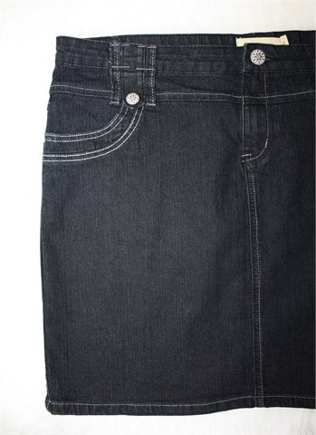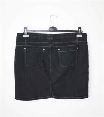 Janina Denim traper suknja tamno sive boje. Prednji cif i kopčanje, pasica za remen. Prednji i stražnji džepovi, rastezljiva, stražnji rasporak. Nešto duža sa stražnje strane (vidjeti mjere):