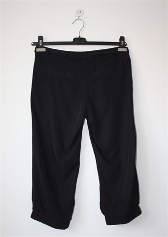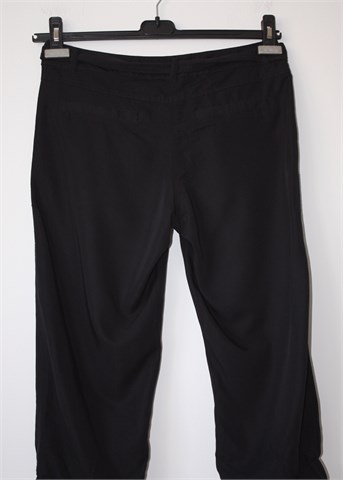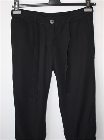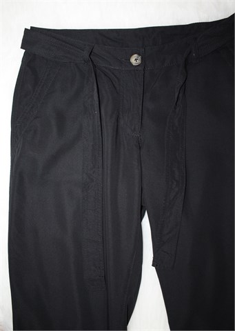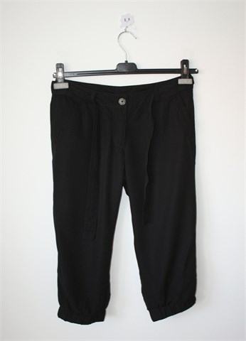 Jean Pascale poluduge hlače crne boje. Prednji cif i kopčanje, pasica za remen sa pripadajućim remenom (može se skinuti). Guma na kraju nogavica. Tanke i lagane, nisu rastezljive.