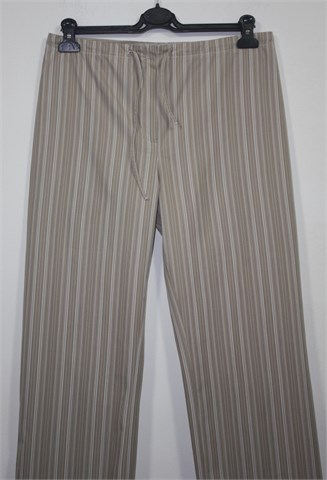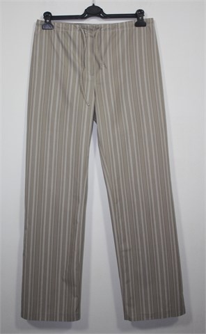 Jodhpur hlače bež boje sa bijelim prugama. Prednji cif i špagica za vezanje koja je uvedena u pasicu. Vrlo lagan materijal, blago rastezljiv.