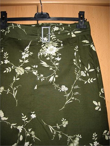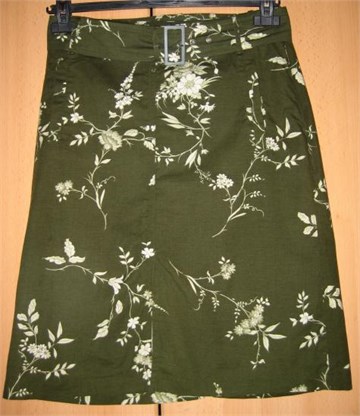 Lagana pamučna suknja, sa remenom od istog materijala. Prednji i stražnji prorez, imitacija džepova sa prednje strane. Rastezljiv, vrlo mekan i udoban pamuk.