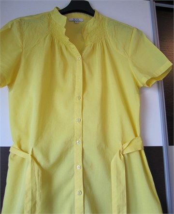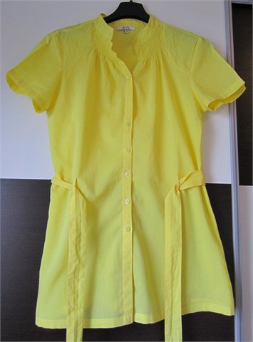 Joy duža košlja (ili tunika) lijepe žute boje, sa vezanjem u struku. Prednje klasično kopčanje, ruska kragnica i ukrasni nabori. Vrlo lagana i prozračna.