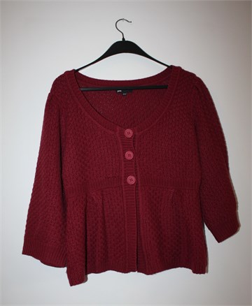 Jsfn vesta na kopčanje/kardigan sa poludugim rukavima, boja je tamnije ciklama rozo-crvene boje (recimo tamnija boja maline). Toplo i mekano pletivo, srednje debljine. Rastezljiva.