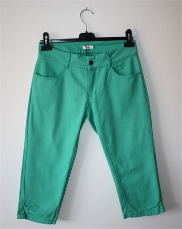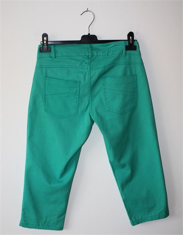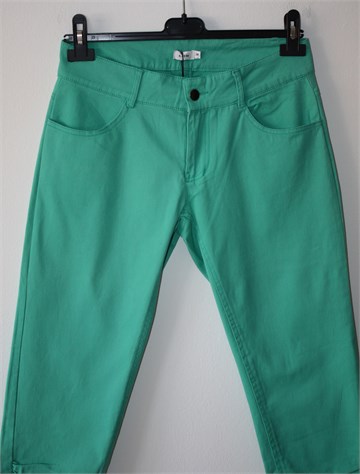 Kaffe poluduge traper hlače (tanke i mekane), svijetlo zelene boje (oznaka boje na etiketi - marine green). Prednji cif i kopčanje, pasica za remen. Prednj i stražnji klasični džepovi. Mekan i blago rastezljiv materijal.