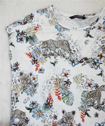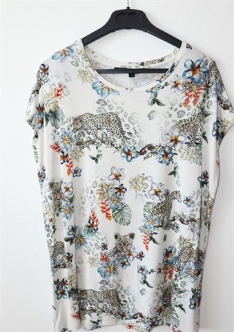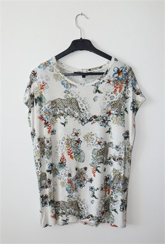 Design by KappAhl majica/tunika sa kratkim rukavima, prljavo bijele boje sa printom (boje i uzorak printa vidljivi na slikama). Mekan i rastezljiv materijal.