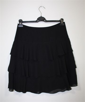 KappAhl suknja crne boje sa volančićima. Stražnji cif i kopčica, podstavljena. Lagana, lepršava i prozračna.