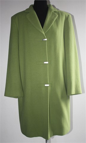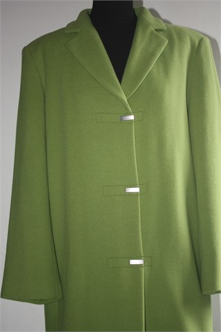 Concept Department kaput svijetlo zelene boje. Prednje ukrasne kopčice, kopčanje na drukere. Bočni džepovi sa cifom. Jastučići u ramenima, stražnji prorez. Podstavljen.