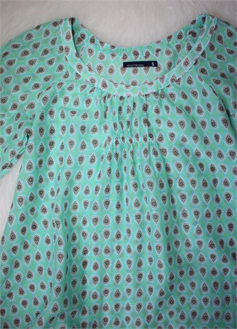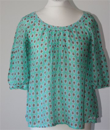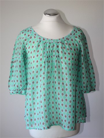 Karlek fran Svea bluza sa poludugim rukavima, zelene boje sa printom (boje i uzorak printa vidljivi na slikama). Tanka i lagana, nije rastezljiva.