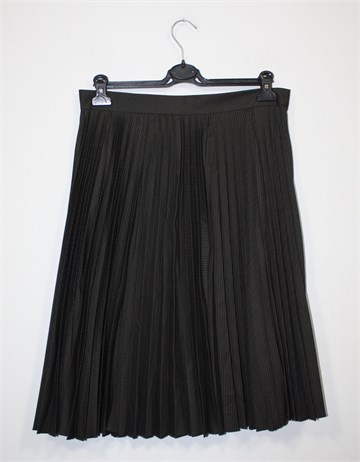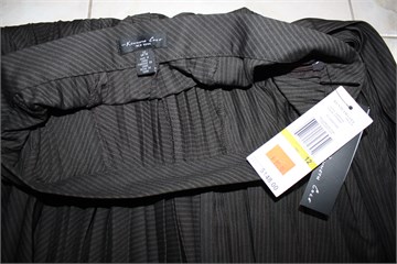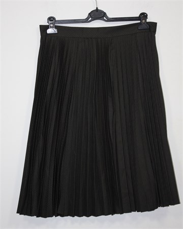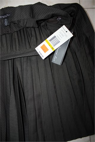 Kenneth Cole plisirana suknja smeđe boje sa prugama, midi dužine. Bočni cif i kopčica. Original, još uvijek s etiketama (cijena na etiketi 148 dolara - snižena na 99,98 dolara). Predivan materijal, kao tanji i gladak štof.