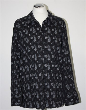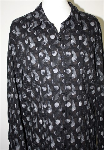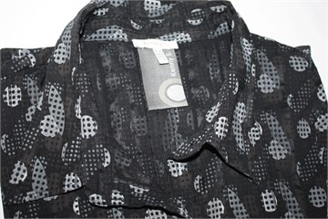 Kenny S. košulja sa dugim rukavima, crne boje sa uzorkom (sivo-smeđim, kao na slici). Prednje kopčanje, mali bočni prorezi. Vrlo rastezljiv materijal.