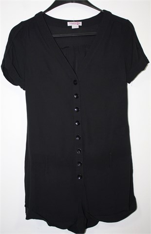 Kensie Girl kombinezon sa kratkim rukavima i kratkim hlačicama. Prednje kopčanje, pasica za remen. Lagana i prozračna viskoza.