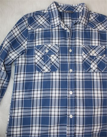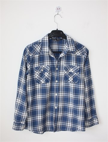 Kids by Lindex košulja sa dugim rukavima, kombinacija bijele i plave boje sa uzorkom na materijalu (vidljivo na slikama). Prednje kopčanje, džepići na prsima.